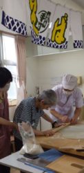 こねるのも切るのも難しいですが教わりながらやって皆さん上手に出来ていました