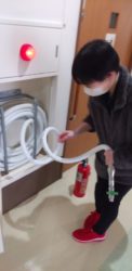 防災訓練を行いました。普段から使い方を知っている事が大切ですので定期的な訓練で