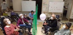 風船バレー大会を開催しました。皆さん真剣な顔で打ち返していました。
